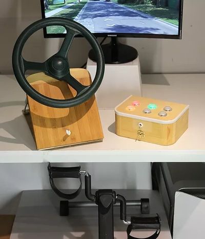The Centivizer system is designed to provide engaging activities and monitor physical and cognitive status over time. The units included: a steering wheel input; six button input; a driving simulator; 360-degree travel video and exercise pedals.